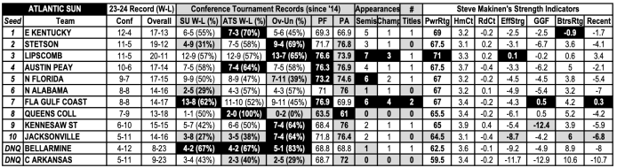 Makinen’s Power Ratings for Atlantic Sun