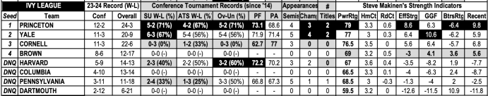 A year after winning the Ivy League and making a run to the Sweet 16 in the NCAA Tournament Princeton is back and favored to cut down the nets in New York once again. The Tigers romped through Ivy League play this season. They went 12-2 SU/7-7 ATS in league play, and have not lost since Feb. 2 when they dropped a road game to Yale.