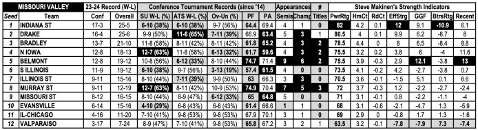 Makinen Power Ratings for Missouri Valley Conference