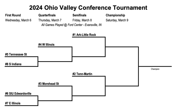 The 2024 Ohio Valley Conference Tournament is one of the more interesting low-major tournaments. Obviously this will be a one-bid league, but the best team in the conference is the No. 3 seed Morehead State, who has a little bit of a disadvantage with the format of the tourney.