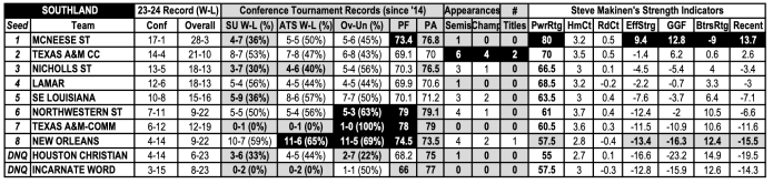Makinen Power Ratings for Southland Conference