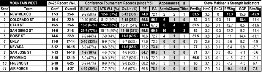 Steve Makinen’s Power Ratings for the Mountain West Conference Tournament