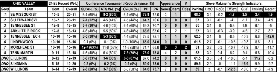 Steve Makinen’s Betting Trends for the Ohio Valley Conference Tournament