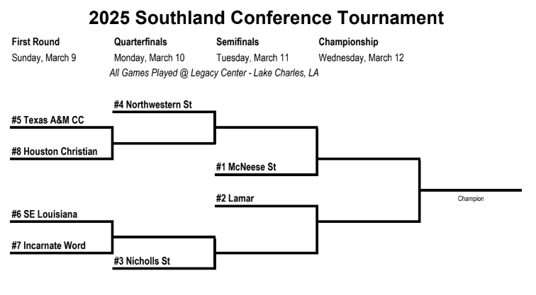 For the third straight year, this tournament will be held at the Legacy Center in Lake Charles, LA, which means that the Cowboys have the home-court advantage. The tournament will be held in this venue through 2029, a concession reportedly made by the conference to keep McNeese from jumping to another conference.