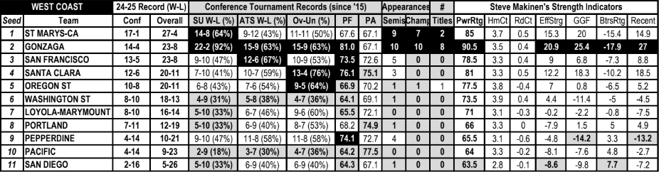 Steve Makinen’s Betting Trends for the West Coast Conference Tournament