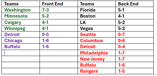 NHL: Look for Jonathan Davis‘ picks later today. He emailed me: On Sunday, the Detroit Red Wings dropped to 0-10 when playing on consecutive days. Detroit has lost all five games both on the front end and back end of back-to-backs. Monday the Buffalo Sabres are at Seattle on the front end of a back-to-back. The Sabres are just 2-12 when playing on consecutive days. Here is a breakdown of the NHL’s best and worst when playing on consecutive days this season.