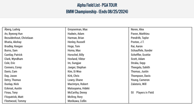 The Top 50 in the FedEx Cup Points are in this week’s BMW Championship. These same Top 50 have also qualified for all eight “Signature events” in the 2025 season.