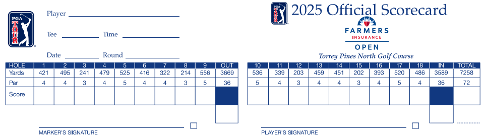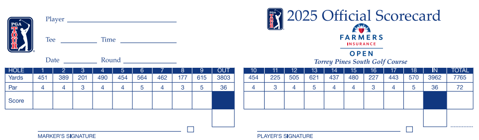 The Torrey Pines Golf Course in La Jolla is a 36-hole public course owned by the City of San Diego. Two courses host the event. The North Course and South Course each host the first two rounds with each player playing both courses before the South Course takes over for the final 36 holes. The South Course, which was renovated in 2019 by Rees Jones before the 2021 U.S. Open, is now the longest annual course on the PGA Tour at 7,765 yards. Both courses play at a par-72, but the South Course is more difficult as the North Course is just 7,258 yards. The South Course is not only 450 yards longer but plays on average close to two strokes higher. The fairways (fifth narrowest on tour at 28-yard average) and rough on the South Course are Kikuyugrass but with a Ryegrass overseed, while the Tom Weiskopf-redesigned North Course has Ryegrass overseed fairways and a Rye and Kikuyugrass rough mixture. The South Course greens (fifth smallest on tour at 5,000 square feet) are faster (12.5 stimpmeter) Poa Annua, while the North Course greens are slower (12 stimpmeter) and larger (6,000 square feet) Bentgrass.