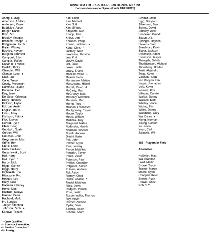 Xander Schauffele and Collin Morikawa, Nos. 2 and 4 in the OWGR, respectively, withdrew from the event last week. World No. 1 Scottie Scheffler has yet to make his 2025 debut as he is still out with a hand injury.