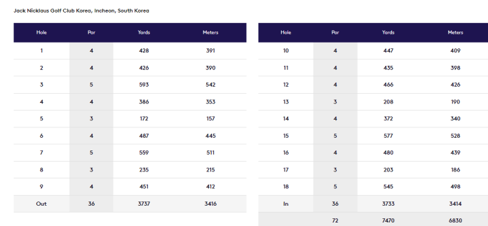 A hole-by-hole description of Jack Nicklaus Golf Club Korea is provided here.