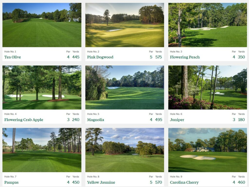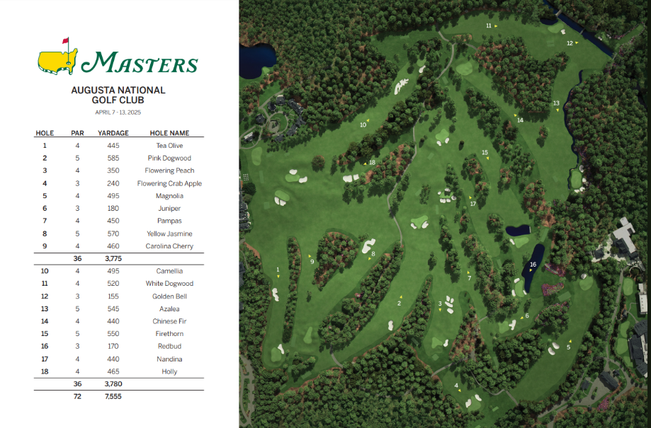 Here is the course layout and scorecard for Augusta National Golf Club (courtesy of the official Masters website).