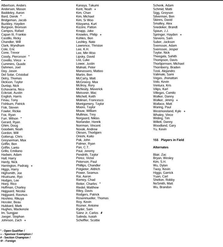 Here is the 155-player field this week at the Texas Children’s Houston Open: