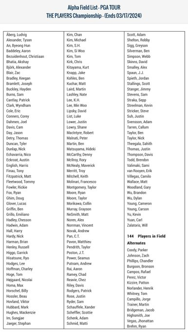 - Brice Garnett won last weekend’s Puerto Rico Open and earned a spot in The Players field; Alexander Björk bumped to first alternate.