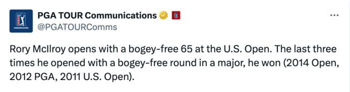 McIlroy and Cantlay are just a couple of the big names near the top of the leaderboard after the first round of the U.S. Open. Within three shots you’ll also find Ludvig Aberg, Bryson DeChambeau, Tony Finau, and Tyrrell Hatton. So the major is certainly shaping up to be a good one. Pinehurst No. 2 showed it’s teeth as well today, causing major problems for guys like Viktor Hovland (+8), Justin Thomas (+7), and Sahith Theegala (+7), who will have some work to do tomorrow to make the cut.
