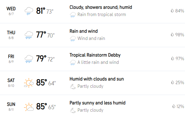 Tropical Storm Debby is on the move along the East Coast, so the tournament will likely have several weather delays, and we could see a potential Monday finish. The event will likely not have to be shortened, and the PGA Tour will make every effort to play all 72 holes so that every player gets a fair opportunity in the last chance to make next week’s start of the FedEx Cup Playoffs.