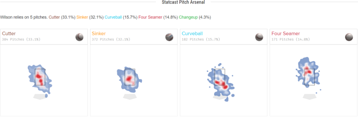 The other thing with Wilson is that I don’t like his location to begin with, but especially here. Look at his pitches and where he primarily throws them.