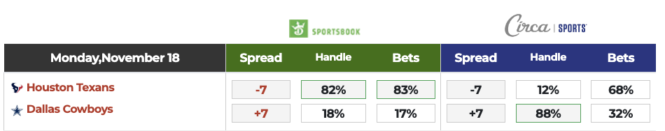 VSiN senior editor Zach Cohen sums up the dilemma facing those interested in playing tonight’s Texans-Cowboys game (8:15 ET, ESPN):