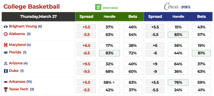 >Circa/DraftKings Betting Splits.