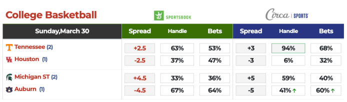 >Circa/DraftKings Betting Splits.