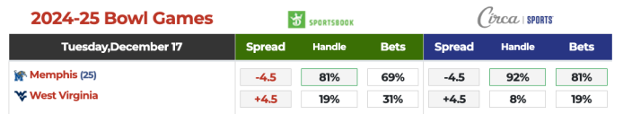 VSiN.com managing editor Adam Burke previews the Frisco Bowl featuring Memphis vs. West Virginia (9 ET, ESPN).